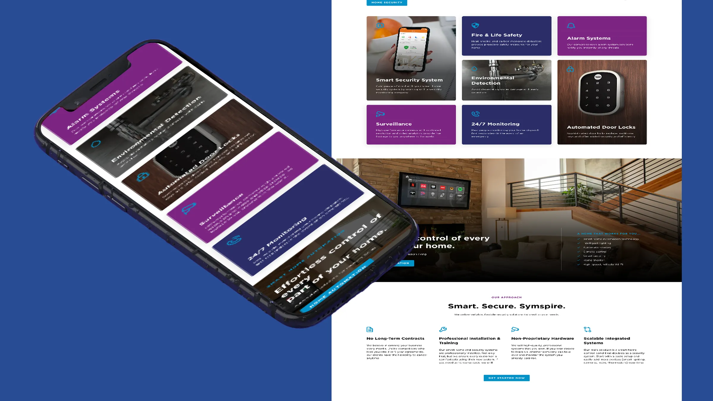 A modern, service-focused website that positions Symspire as a trusted, innovative security and home automation leader. The site successfully communicates their unique advantages—no contracts, professional installation, scalable systems—while maintaining their family-owned heritage and generating qualified leads across Middle Tennessee.